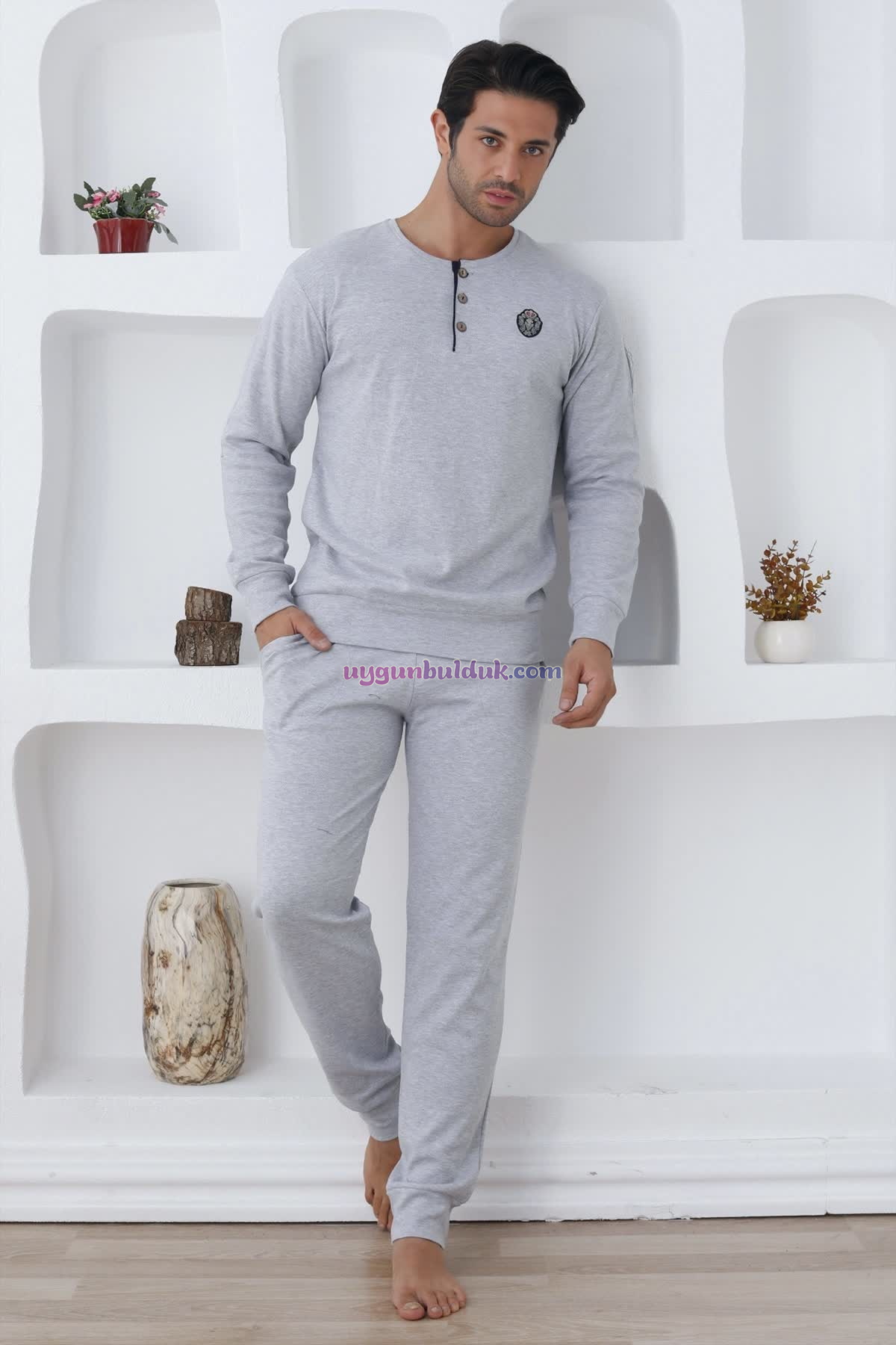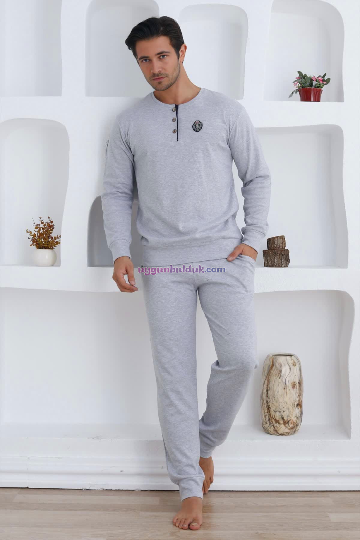 Gri Renk, Pamuk, Uzun Kol Erdeniz 0300 Erkek Pijama Takımı