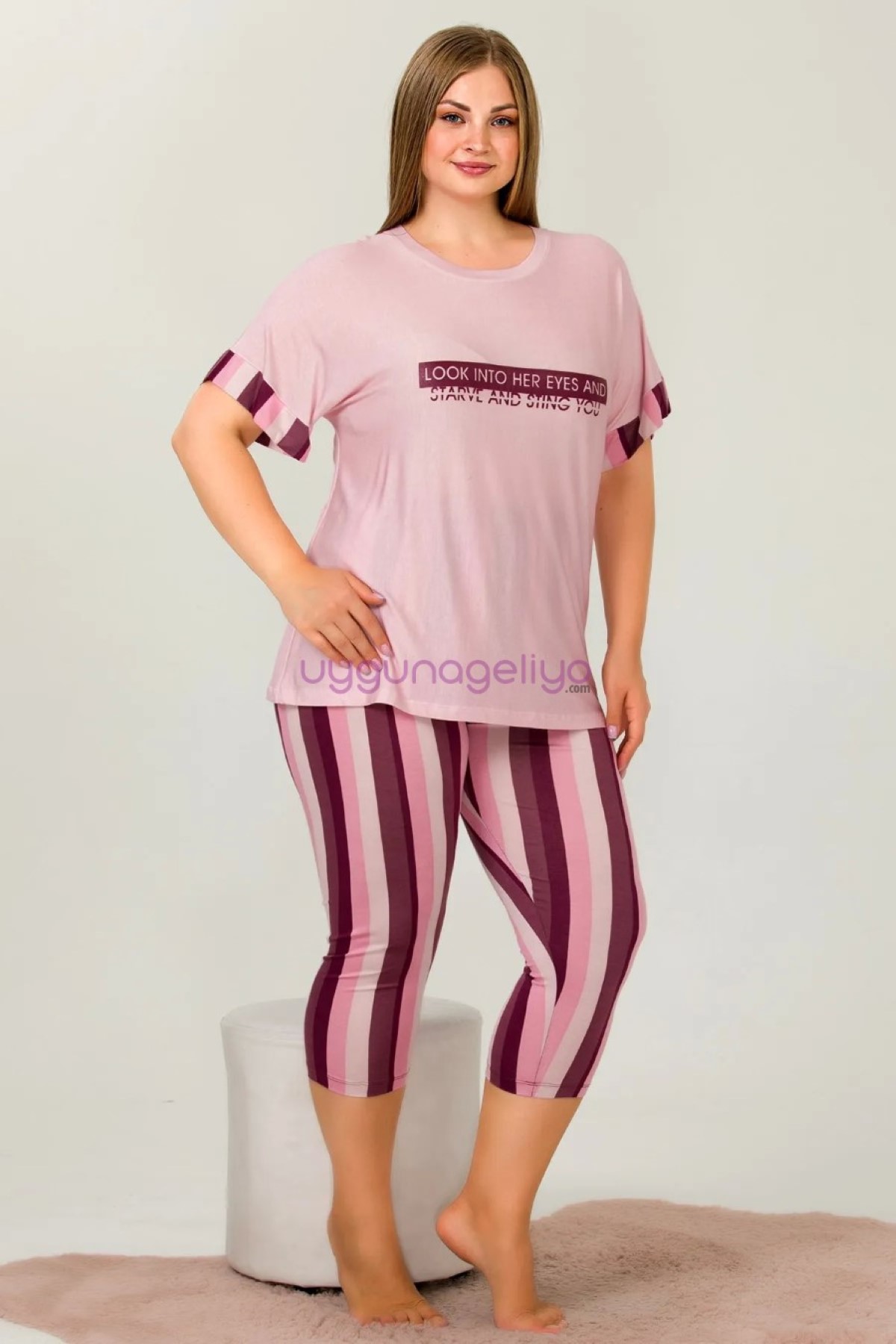 Lady Kısa Kol, Büyük Beden Kapri Pijama TakımıLady..