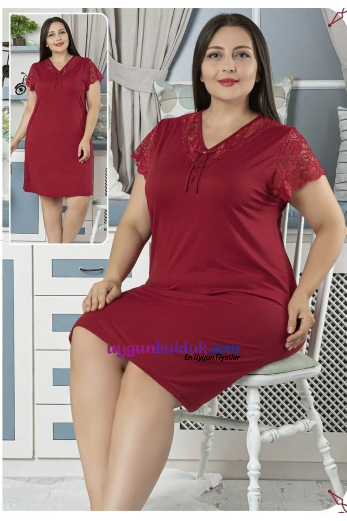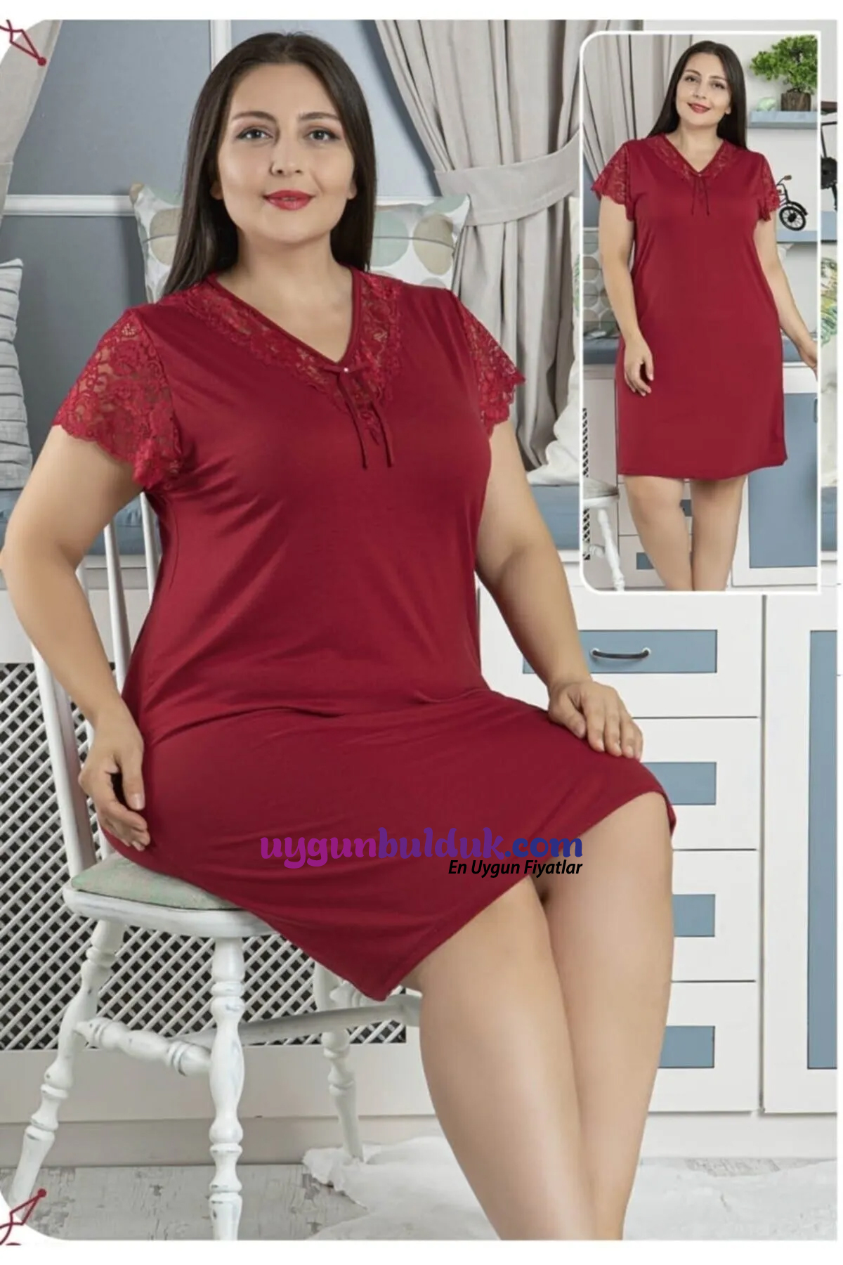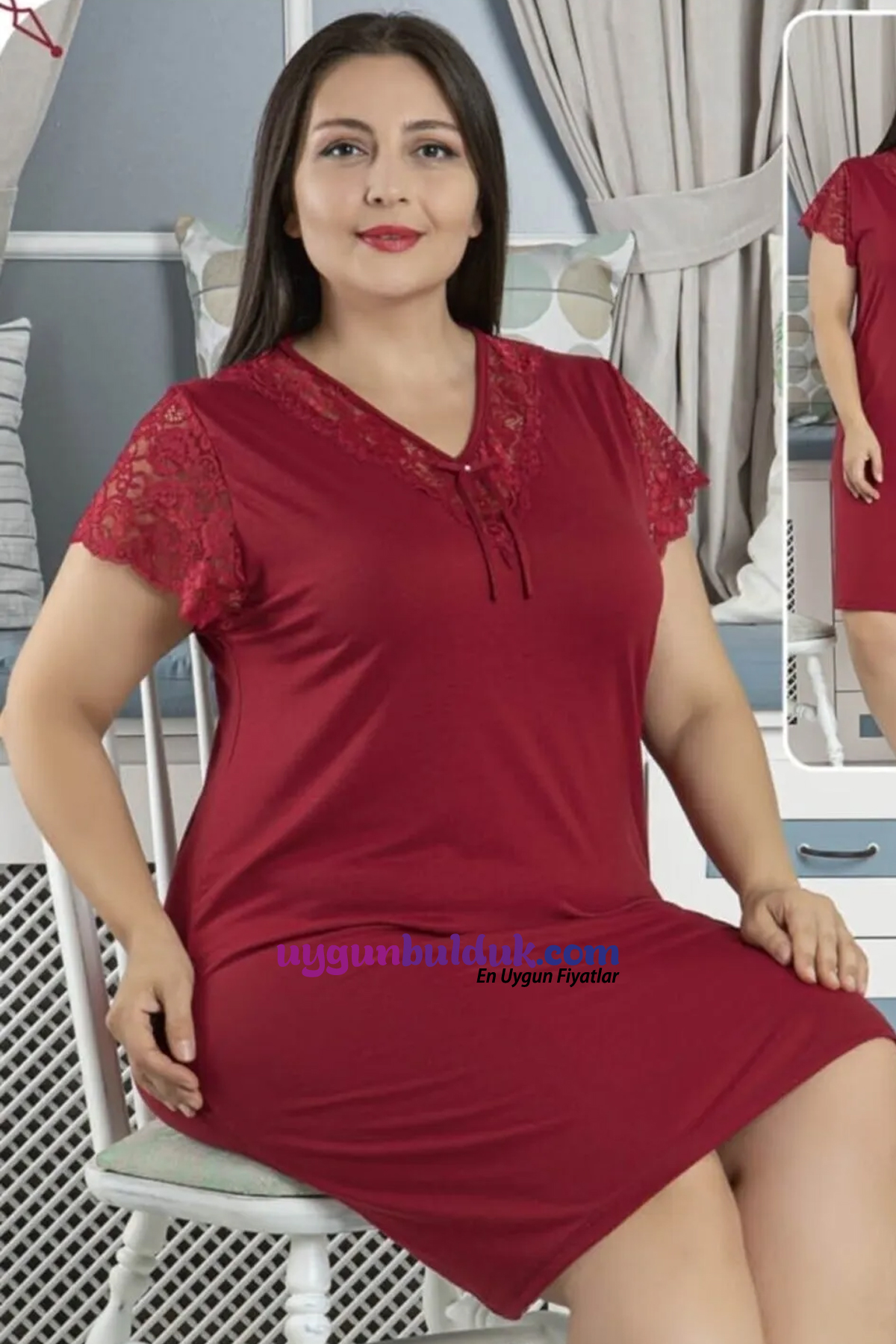 Jenika 42593 Bordo Renk Büyük Beden Tunik - Battal Boy Gecelik