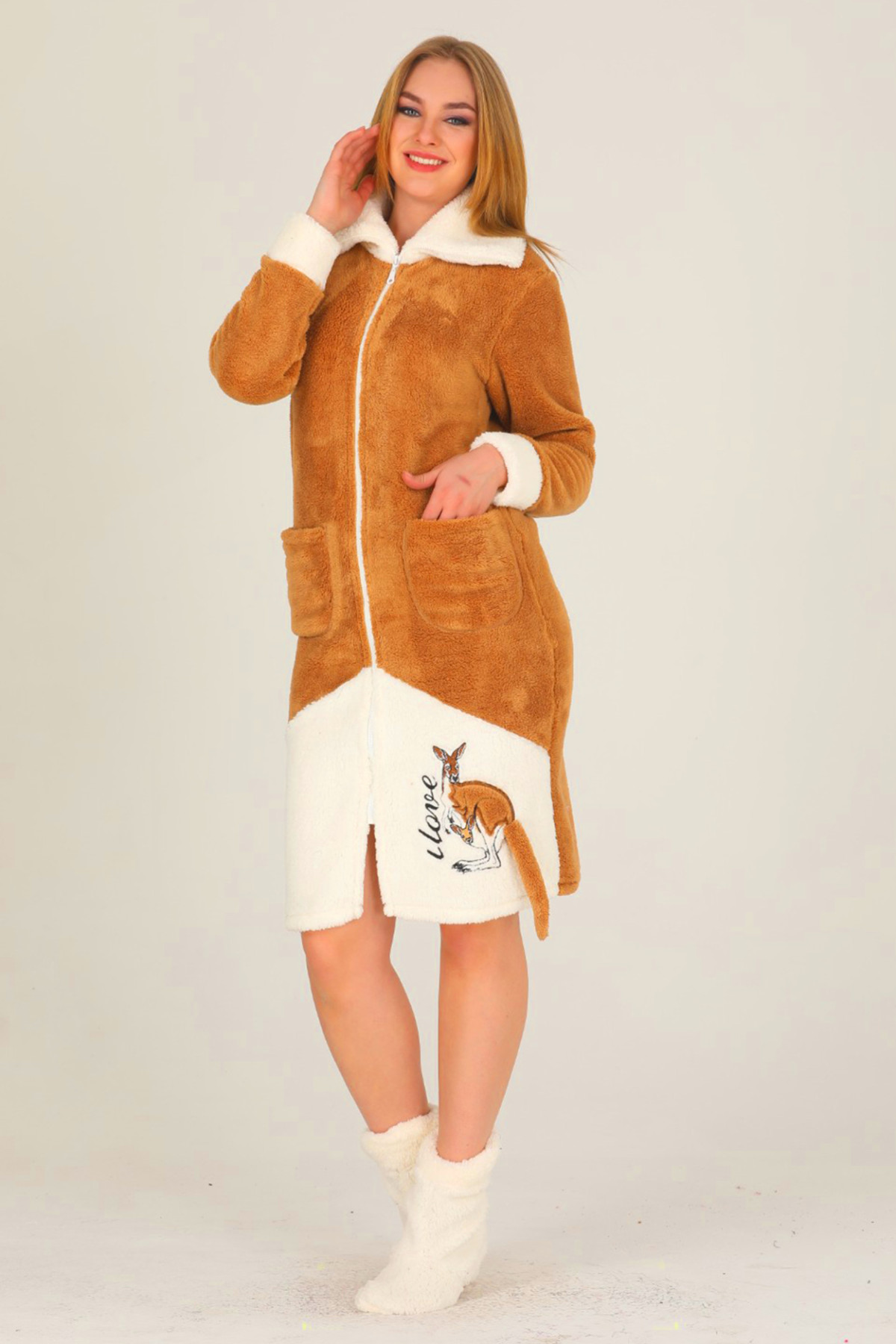 Fermuarlı olup önü boydan açılabilirdir.