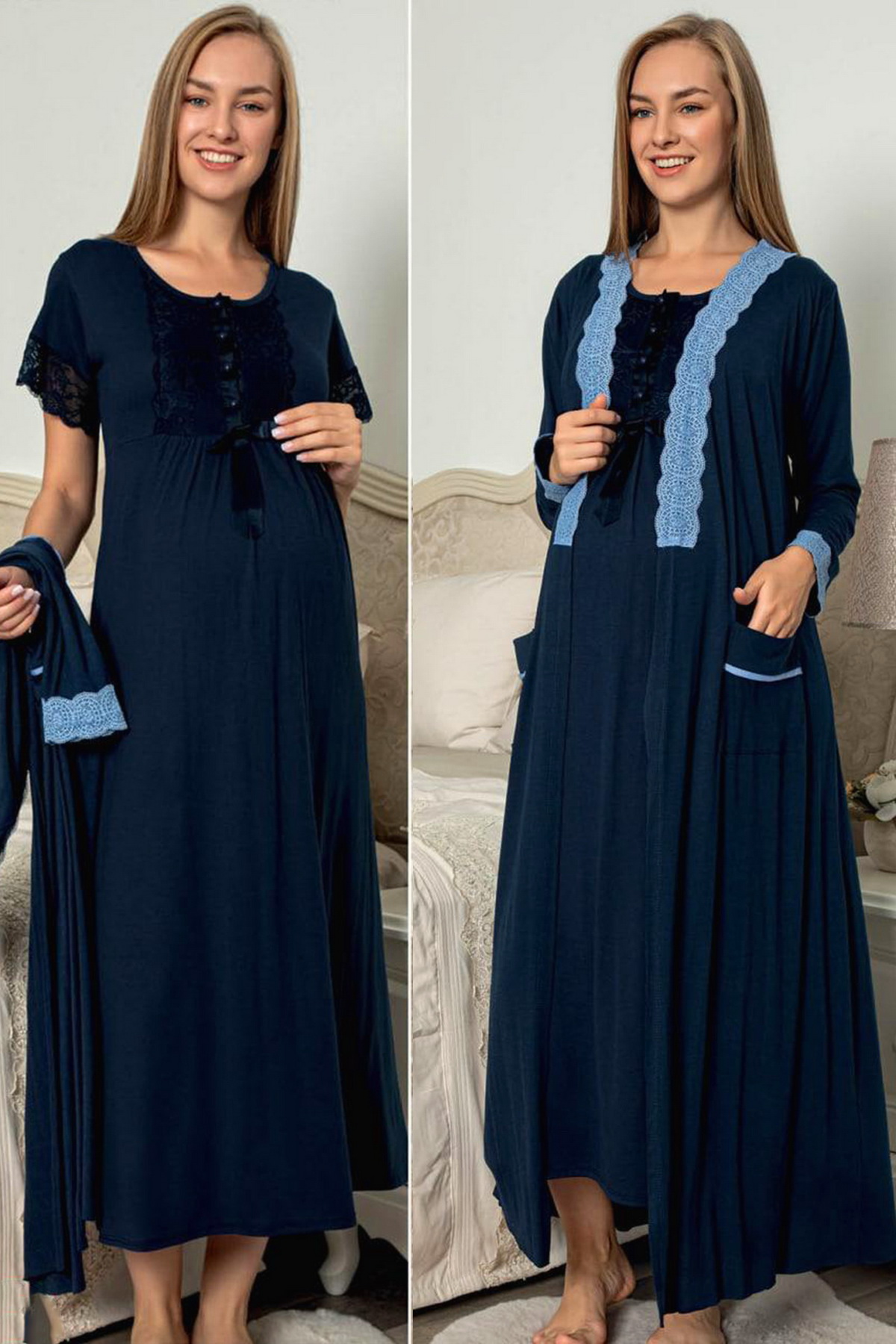 Lacivert Renk ve Sabahlıklı Jenika 49220 2 li Sabahlıklı Hamile Gecelik Takım