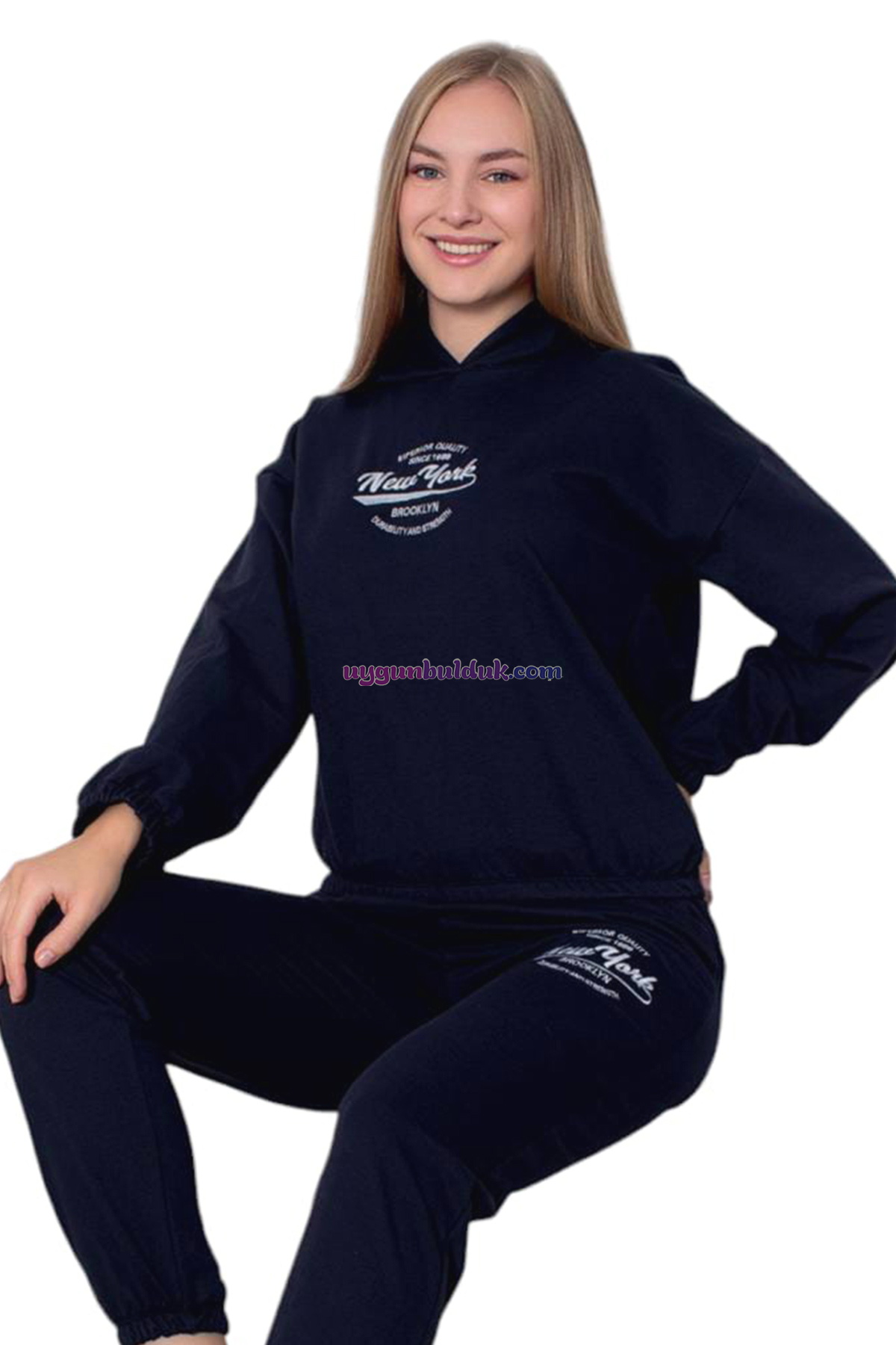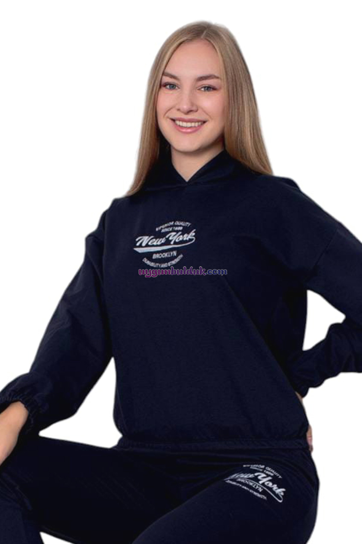 Lacivert Renk Uzun Kol ve Kapüşonlu Teknur 2908 Kadın Spor Eşofman Takımı